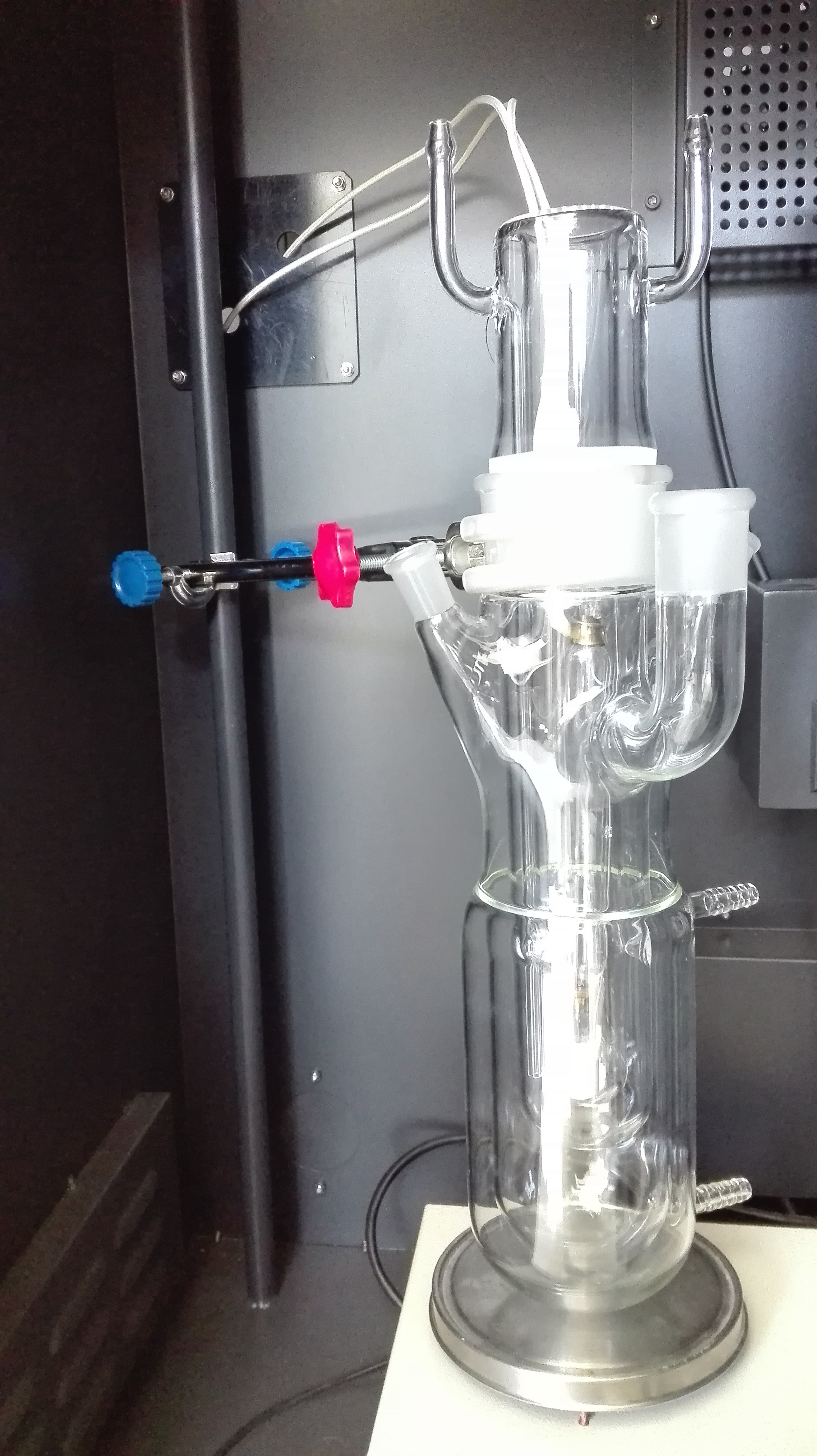 型號:PH 250,采用PYREX玻璃,用于光化學反應容器,可以配合冷阱、磁力攪拌,溶液可以有效的接收汞燈照射。反應器有效容積250ml,磨口60/40,14/23,19/26,24/29。