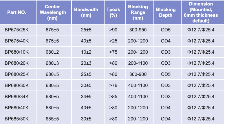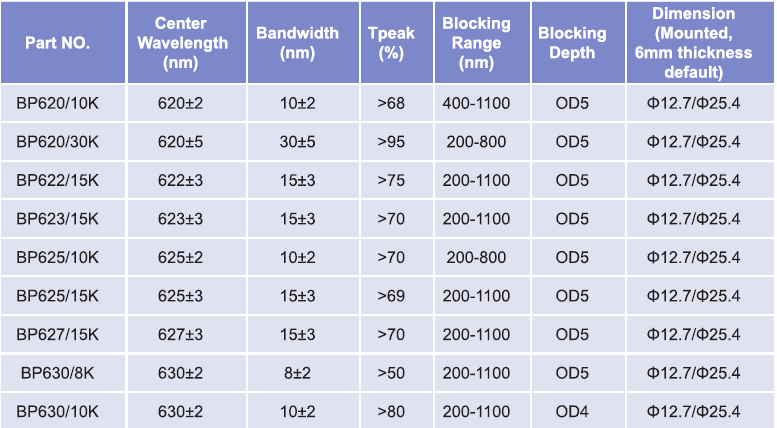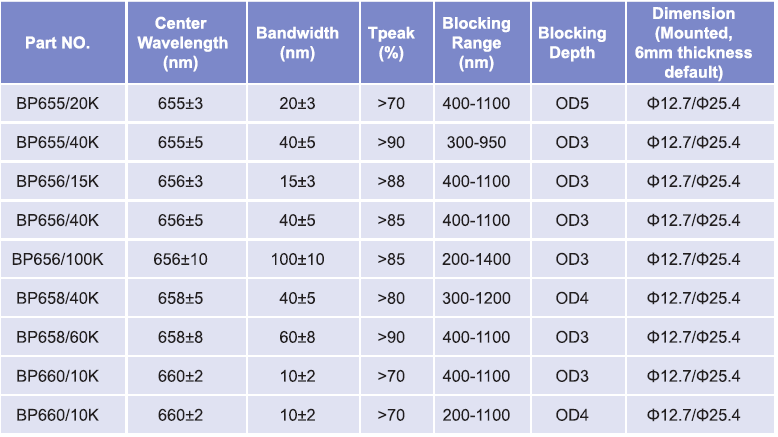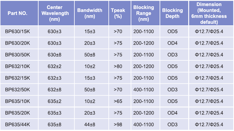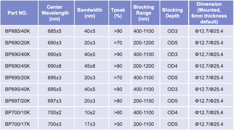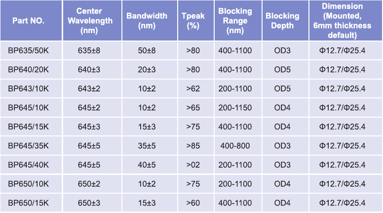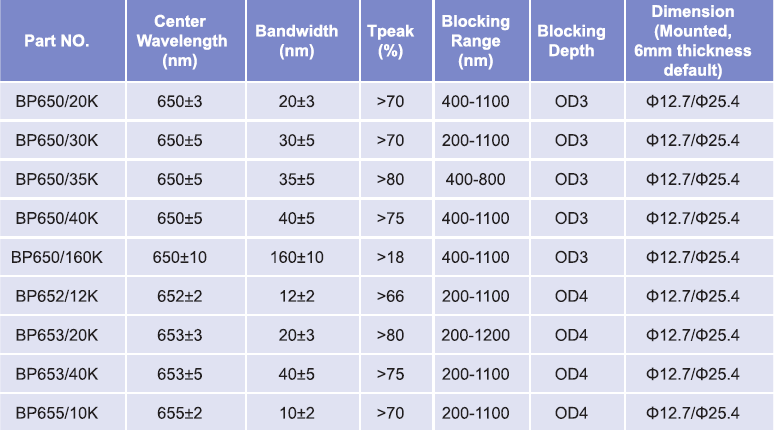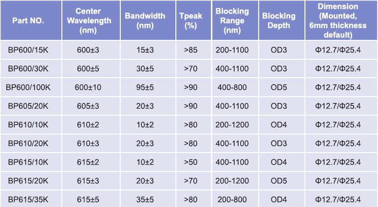 4、庫存:上萬種標準及非標準帶通濾光片產品現貨供應