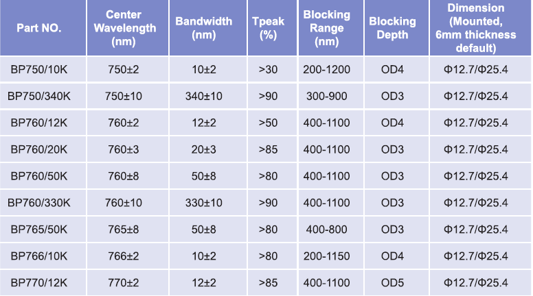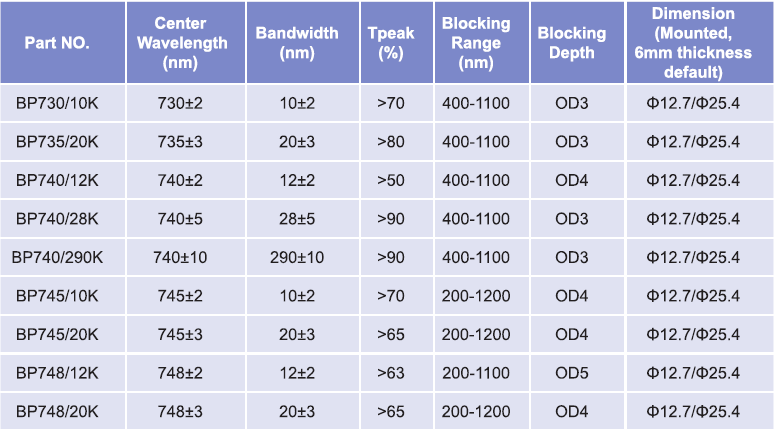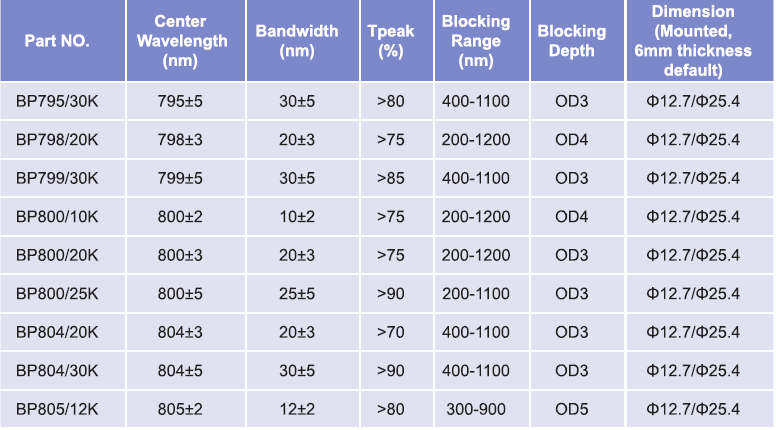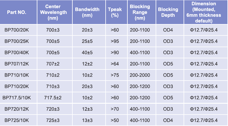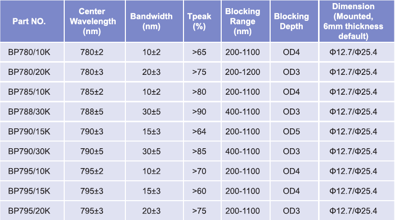 4、庫存:上萬種標準及非標準帶通濾光片產品現貨供應
