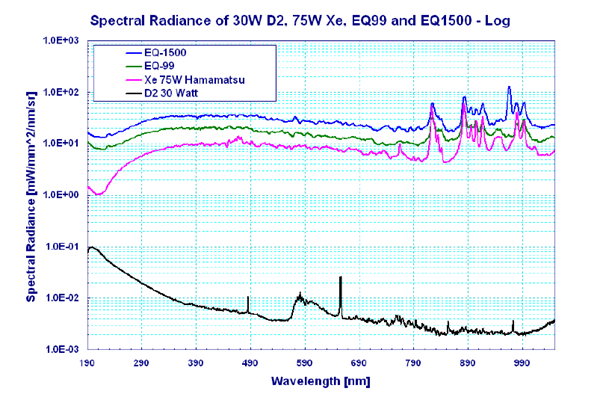 The EQ-99X and EQ-77 covers the range from 170 nm to 2400 nm. Whereas the EQ-99XFC covers