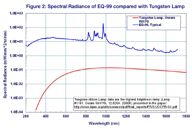 •The spectral radiance (brightness) of the LDLS exceeds that of traditional Tungsten sources across the