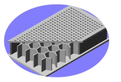 ●蜂窩結構材料隔離層面, 多孔空氣阻尼, 固有頻率低, 隔振性能好