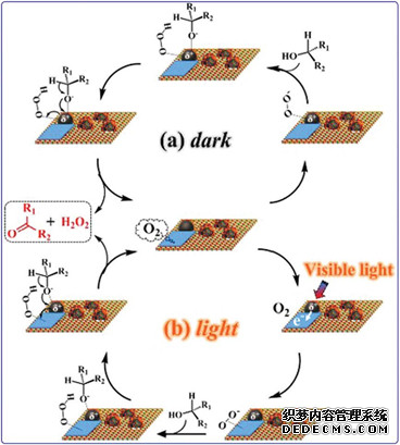 TiO2@NC-Ru-T中氮摻雜碳不僅增強了Ru納米顆粒的催化性能,同時通過Mott-Schottky接觸促進了光活化Ru納米顆粒中光生電子向TiO2的輸運。在可見光照射下,上述效應可以大增強乙醇在空氣中的選擇性需氧氧化。這一研究為光催化反應中提高可見光吸收和電荷/電子轉移提供了可行的方法,也為開發將太陽能轉化為相關化學品的能源轉換反應催化劑指明了新的方向。