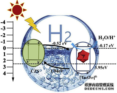多金屬氧酸鹽因其高效、廉價、可循環使用和環境友好的特性而成為了光催化產氫領域具前景的光催化劑之一。本文中作者將多金屬氧酸鹽與金屬硫化物復合制備了無貴金屬的二元光催化劑,其在可見光下具有較高的產氫效率。作者合成了一系列基于鉭酸鹽Na8Ta6O19和金屬硫化物CdxZn(1-x)S的復合異質光催化劑。